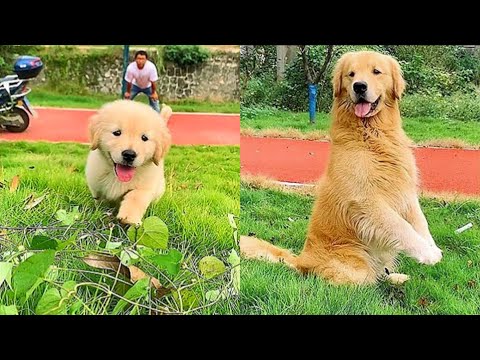 Golden Retriever - Dog AwesomeGolden Retriever takes children outdoors????The puppy runs on the grass????