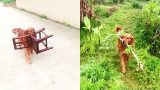 Golden retriever urges owner to cook???? Funny dog with basin stuck by door????