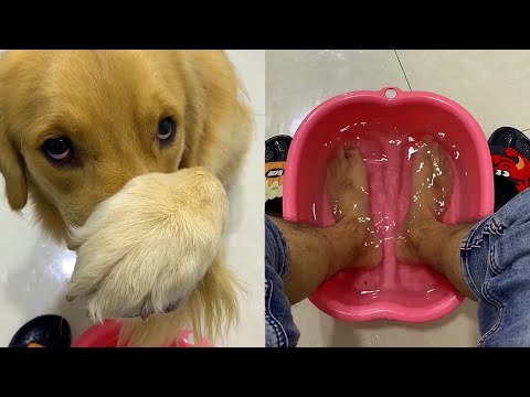 Golden Retriever: Your feet are so smelly???? Funny dog