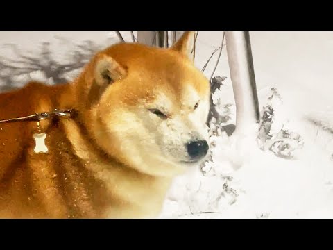 柴犬らんまる 大雪で変わり果てた庭に絶望し犬語でピィピィ泣き言を言う柴犬【柴犬らんまる】