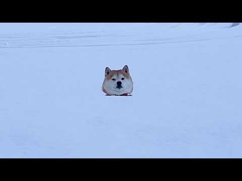 柴犬らんまる イキって大雪に飛び込むも1歩目で遭難して情けなく救助を待つ柴犬【柴犬らんまる】