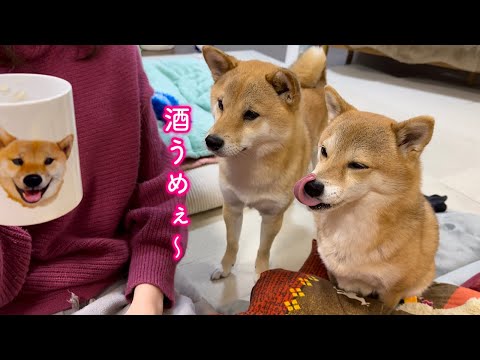 豆柴福ちゃん富くんFuku and Tom お酒を飲んでママにもう一杯を要求してくる酔っ払った柴犬が可愛い【豆柴福ちゃん富くんFuku and Tom】