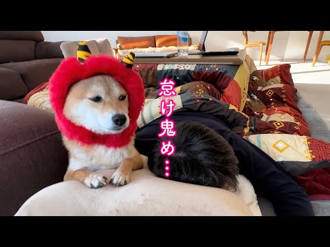 豆柴福ちゃん富くんFuku and Tom 怠けた鬼のようなパパを冷静に退治する柴犬が可愛い【豆柴福ちゃん富くんFuku and Tom】