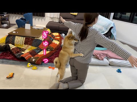 豆柴福ちゃん富くんFuku and Tom ママとの遊びが楽しすぎて抱きついてはなれようとしない柴犬が可愛い【豆柴福ちゃん富くんFuku and Tom】