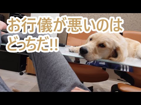 ティトはゴールデンレトリバー あれれっ!お行儀が悪いのはどっちですか?ゴールデンレトリバーの子犬ティト。【ティトはゴールデンレトリバー】
