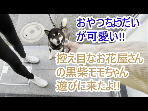 ティトはゴールデンレトリバー お花屋さんの黒柴モモちゃんが微妙な距離感でおやつもらいに遊びに来たよ!ゴールデン【ティトはゴールデンレトリバー】