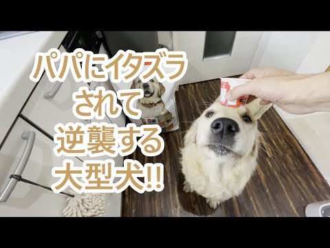 ティトはゴールデンレトリバー パパにイタズラされて逆襲する大型犬!ゴールデンレトリバーの子犬ティト。【ティトはゴールデンレトリバー】