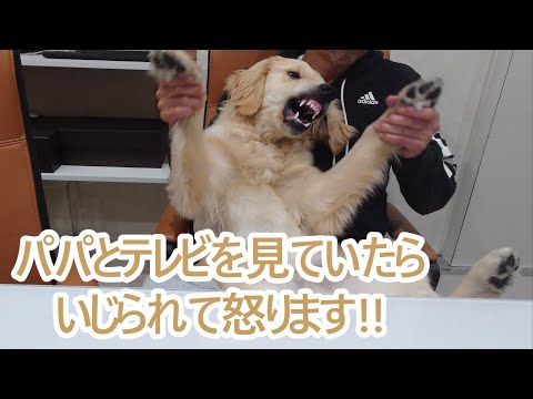ティトはゴールデンレトリバー 二人仲良くテレビジョンを見ていたら!なぜか怒るゴールデンレトリバーの子犬ティト。【ティトはゴールデンレトリバー】