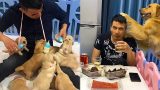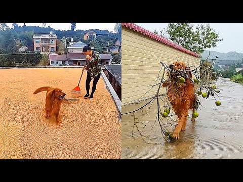The golden retriever helps the owner to dry the millet????Dog who loves to collect stuff everywhere????