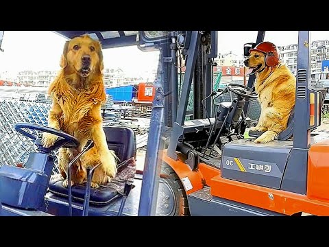 Golden Retriever - Dog AwesomeThe golden retriever looks at the gesture of the owner and operates the forklift????