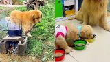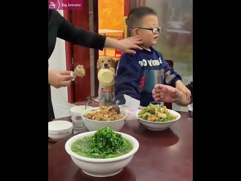 The golden retriever reminds the owner: I want to eat too????